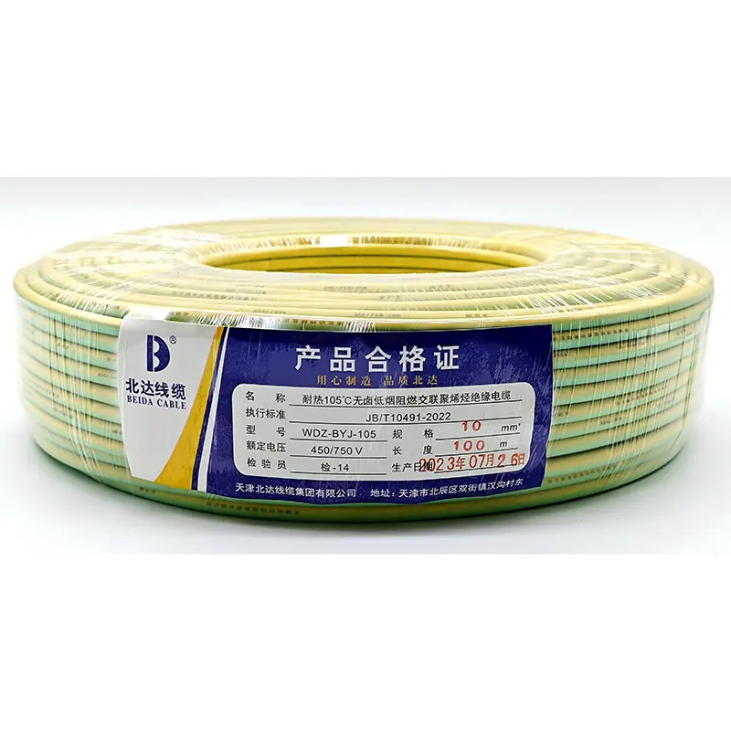 Tianjin Beida sizin WDZ-BYJ Tək nüvəli kabel istehsalçısı və təchizatçısı olmaq üçün yaxşı seçimdir. Bu tip kabel yanan zaman daha az tüstü və zəhərli qazlar çıxarır, PVC kabellərlə müqayisədə insan orqanizminə çox az zərər verir. Bu həm də insanların qaçması üçün daha uzun müddət təmin edir. Buna görə də, bu növ kabel əsasən yüksək mərtəbəli binalarda və sıx məskunlaşan ərazilərdə istifadə olunur.